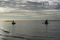 Отель расположен не на Атлантике, а на Карибском море, в связи с чем, вода здесь теплее, чище, волна не такая большая. Пляж отеля средних размеров, ежедневно убирается, но морское дно, конечно не очень. Местами всречаются рифы, трава и самое неприятное - очень мелко. Для плавания не подойдет, но для маленьких детей - нормально. Но... примерно в 800 м. направо есть пляж отеля "Коста Карибеа", а там еще хуже. В то же время, есть выход - не идти направо, а идти налево, т.к. примерно в полукилометре, начинается плях отеля "Хеменгуэй", а за ним еще и пляж "Рояль", вот там реальная пляжная Доминиканская красота, как на картинке (ни нужно ехать ни на какие экскурсии на острова), там ни чем не хуже, и самое главное, они фактически пустынные ... лишь белоснежный песок и пальмы. Кстати, об экскурсиях, мы ездили лишь в Санто Доминго, на острова решили не ехать, и полагаю, что не прогадали. Одни из наших соотечественников в отеле съездили, и делились впечатлениями: "Весь день провели в дорогах, приехали на остров, а там тот же песок, те же пальмы, что и у нас тут, только туристов в 20 раз больше, и цены в местной сувенирной лавке втрое выше".