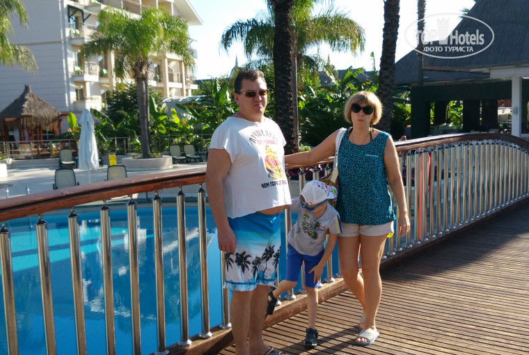 Территория отеля очень ухоженная, шикарные газоны,цветы, гамаки, качели, детская площадка, беседки, бассейн с лебедями.Есть подогреваемый открытый бассейн (27 градусов) с горками и огромный без подогрева, а также подогреваемые детский на улице и бассейн в спа .