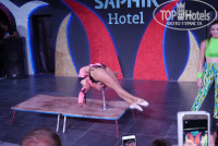 Добрый день! В отеле были с двумя детьми в июле. Номер стандартный, сначала заселили в номер с видом на стройку. В принципе, наверное, как в любом отеле: сначала неликвид)) После общения на ресепшене переселили в номер с видом на бассейн, правда на следующий день. Отель для четверки очень не плохой, кормят на убой!)) Всего хватало, фруктов, овощей, мяса, рыбы. Частенько были раки в большом количестве. В течение дня несколько раз давали мороженое + детям в детском клубе. Анимация понравилась и мне, и дети остались очень довольны! Ребята веселые, стараются. Мини клуб - супер! Дети каждый день там зависали. Для взрослых - игры у бассейна, утренняя гимнастика у моря, аквааэробика, Зумба и т.д. Вечерняя анимация тоже разнообразная и интересная. Тренажерный зал на троечку, никто не присматривает и половина тренажеров не работает. В разгар сезона народа конечно много, но это и понятно) Возмутило очень то, что многие отдыхающие занимают лежаки и у бассейна и у моря одновременно и они по пол дня пустуют, а другим приткнуться некуда! Территория отеля достаточно просторная, красивая. Что касается моря: море грязное, постоянно какой то мусор плавает и не только природного происхождения(( За весь наш отпуск (3,5 недели) мы видели спокойное чистое море от силы раза 4-5!!! Но выход тоже есть - пирс. С него и море более чистое и заходить-выходить гораздо приятнее. На пирсе есть горка и пресная вода, чтобы смыть соль. В целом отдыхом остались очень довольны. Желание вернуться в этот отель есть