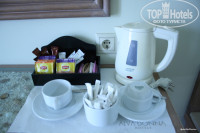 Напитки обычно приносят официанты, но можно налить самому – чай (в т.ч. много разных пакетированнных), кофе-машина (Нескафе, а вот в барах стоят Lavazza с хорошим кофе), пакетированные соки.