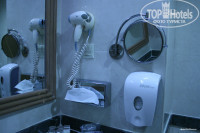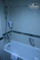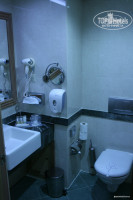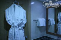 Напротив шкафа находится ванная комната, где есть раковина, ванна и унитаз. Мыло (наклейка Dove) находится в диспенсере на стене. Над ванной аналогичный диспенсер (там мыло является и шампунем). Есть халаты, тапки. Из допов - кондиционер для волос, набор ватных дисков и палочек, шапочка для душа, расческа, пилка для ногтей, бумажные салфетки. По запросу (звоните на ресепшн) могут бесплатно принести зубную щетку с пастой и набор для бриться (пена и бритва).