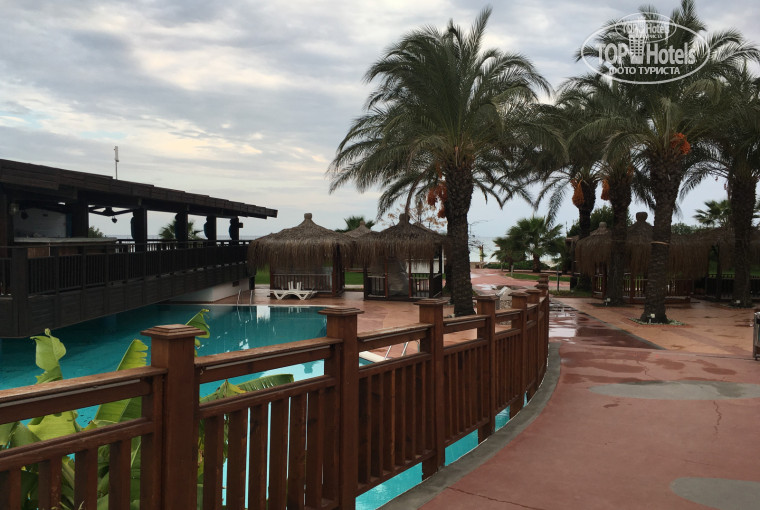 Отдыхали в отеле с 26.11 по 30.11.17г. Сразу скажу- этого мало! Хотелось остаться ещё на несколько дней, но свободных номеров в отеле уже не было. Мы бронировали номер стандарт, но нам предоставили номер на порядок выше с видом на море, без каких либо доплат! Номер просторный, с хорошим освещением, огромное зеркало на всю стену, а внутри него плазма. Заселившись, не обнаружили тапочки и халаты, но по первой же просьбе их принесли в номер. Температура в отеле, как и в номере очень комфортная, тёплые вещи вообще не пригодились. Хороший фитнес зал, классная сауна 92*, Хамам правда маленький) очень тёплый внутренний бассейн, вода там +31*! Так же рядом есть Детский бассейн. На улице один из бассейнов с подогревом, но в нем все равно холодно купаться, разве что только после сауны) Территория большая, ухоженная, есть отдельный дом для котов, ребёнку нравилось ходить к ним в гости)) Заход в море очень хороший, пляж чистый. По поводу питания - привезли каждый по 3.5 кг))) Повара умнички, все очень вкусно, большой выбор блюд, много рыбы, мяса, сыров. Десертов не такое большое разнообразие. Из фруктов были апельсины, мандарины, дыня, яблоки, сливы, гранат, груши, бананы( может что-то ещё было, мы не сильно обращали внимание, т.к. это есть и у нас дома) Для детей есть мини клуб, много игрушек. Детское мини диско длилось всего 15-20 мин, т.к. было 3-4 ребёнка, из которых выходил танцевать только один)) Для взрослых выступал фокусник, в один из вечеров была живая музыка. Анимация слабовата, наверное за лето устали ребята)) Контингент отеля - большинство немцев, очень мало русских.В целом отдыхом очень довольны. Будем рассматривать этот отель на лето.