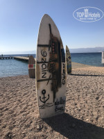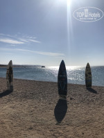 Вход на пляж по билетам, их выдают на ресепшене. Лежаки и стационарные зонтики бесплатны. Полотенце можно бесплатно взять в отеле. Территория пляжа необычная, включает 5 бассейнов и платный бар.