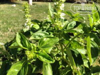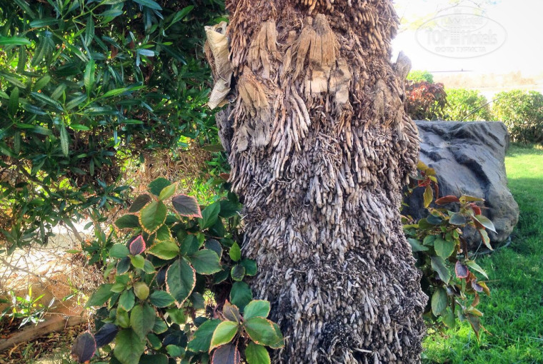 Территория отеля. Очень красиво контрастирует светлая архитектура отеля с зелёными и цветными кустами. Если устали ходить по лестницам есть дорожки по бокам. Куча пальмочек.