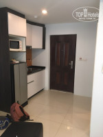 Номер небольшой, но светлый и места вполне достаточно. Все новенькое и чистое. Только вот полотенца попадались не в самом хорошем состоянии. В номере есть все что нужно для жизни и даже больше: небольшая кухонька с плитой и всеми необходимыми принадлежностями. Балкон узкий с видом на соседний отель (в основном открытый коридор), но все не так страшно, с внешней стороны окна хорошо затонированы, а в отеле напротив люди практически не ходят, поэтому спокойно можно отдыхать на балконе.
