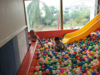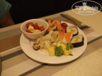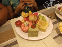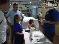 Входит в знаменитую мировую цепочку отелей Wyndham Hotel Group. Тур обошелся на 2 взрослых и 2 детей, 120 тыс, на 16 дней, питание HB, вылет из Москвы. В номерах имеется набор для чая и кофе,посуда, чайник. В ванной комнате: фен, зубные пасты, зубные щетки, бритвенный станок с кремом для белья, шапочки для душа, расчески, жидкий поошок ,наборы для шитья все в индивидуальной упаковке. Также гель для душа, шампунь, кондиционер, лосьон, мыло,туалетная бумага, одноразовые сидения для унитаза, салфетки, вода одна бутылка на человека. Все вышеперечисленное с ежедневным пополнением. Также в шкафу бесплатный сейф, халаты, тапочки, зонты на случай дождя, которые если и бывают то льют по ночам. Были расстроенны перед вылетом,так как все сайты о погоде прогнозировали дожди весь месяц. По факту оказалось только первые два дня без солнца. Метеостанции установленные высоко в горах показывают высокую влажность, соответственно осадки. Уборка ежедневная, смена полотенец халатов, постельного белья. Детская водная горка, детская площадка,бесплатное предоставление коляски по запросу, бесплатная игровая комната с проектором для просмотра мультиков, тренажерный зал. Ежедневные мастер-класс по изготовлению кукол на бамбуковых палочках, возле стола гидов. В Китае в бассейнах разрешено купаться до 23ч. Ночью на пляже полно китайцев ловят крабиков, свадебных фотографов с парочками. Завтраки - дыня, арбуз,апельсин, драконий фрукт, карамбола, ананасы,яблоки ежедневно.Редко - слива, персики. Также очень вкусные пельмени с креветками на пару, мюсли,хлопья, молоко, тосты, каши, сладости, различная выпечка. Очень много йогуртов (том числе диетических). Для приготовления салата много болгарского перца, помидоров, огурцов, оливок, соевых бобов, молодые проростки пшеницы, оливкого масла, различные соусы, вт.ч. соевый. Ужины - фруты , мороженое с различными соусами, пиво, кола, соки из автоматов, кокосовое молоко на столе с десертами, роллы 2-3 вида, крабы, креветки, мидии, улитки, устрицы, пицца, рис с овощам и беконом, картофель, суп-пюре, мясо у китайцов принято с костями подавать. Китайский самовар платный для русских, но свежие морепродукты (гребешки и осминожки) можно отварить у поваров где по утрам выкладывают пельмени на пару. Меняли ужин на обед в день отьезда, на обед один вид риса и один вид картофеля, один кусочек курицы, пудинг, что -то еще осталось в автомате из колы и спрайта. Не советую брать обеды. Ужины берите обязательно,будет столько морепродуктов , что на уличных торговцев рыбой и морскими деликатесами вы даже смотреть не будете.Знакомились с другими туристами в Санье, такого количества морепродуктов не у кого в отелях нет. В основном их ужин состоял из одного вида риса и картофеля , курицы. Морских тварей они дегустировали в уличных лавках за нн количество юаней. Все цены на улице и тц указывают не за 1 кг как в России, а за полкило (500 гр.). Не забывайте об этом когда будете совершать весовые покупки. Медицинский центр, кинотеатр, магазины, банкомат в отеле. Достаточно иметь с собой карту виза, банкомат переведет рубли на юани с комиссией 100-200 рублей за одну транкзацию, так что сразу меняйте большую сумму.(банкомат на англ. языке.) У гидов тоже есть размен . Мелочь на проезд лучше менять у девочек на ресепшен где вам выдавали ключи от комнаты.( у них всегда есть мелочь). В медицинском це