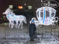 В 23,00 начинался НГ банкет,нас встречали у елочки сказочные герои с которыми можно было сфотографироваться.после сбора гостей мы прошли к своим столикам,столик был красиво сервирован,много блюд. Холд.закуски-8 наименований,овощ.тарелка-3 блюда,гор.закуска-жульен из белых грибов,гор.блюдо-голубцы с лососем. фруктовая ваза-ананас,мандарины,виноград. Из спиртного; водка,шампанское,вино. Напитки; морс,минералка. Десерт: мороженое,пирожное,кофе,чай. Все очень вкусно,спасибо поварам. На столиках каж.гостю были НГ подарки. НГ вечер начался в 23,30 и шел до 4,30. Были конкурсы,викторины,муз.поздравления,выступления артистов,мы получали призы за правильные ответы. Не скучали,пели,танцевали. Была теплая атмосфера,давно мы так не веселились,гости были из разных городов.