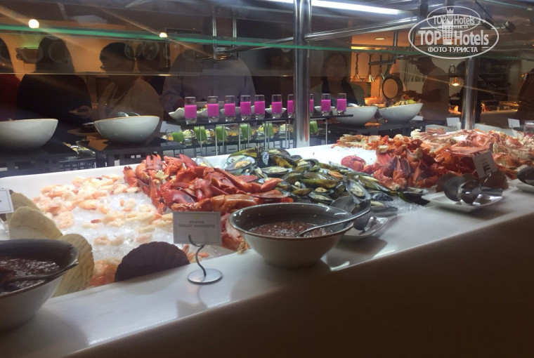 На ужин в отеле проскакивают лобстеры, гигантские креветки и прочие вкусности)