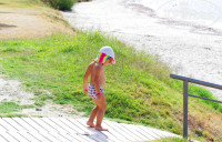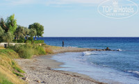 Нам быстро дали номер в главном корпусе на втором этаже с видом на гору, мы закинули чемоданы, и пошли на пляж. Шторм, налетевший накануне вечером, накидал на пляж водоросли и маленьких морских ёжиков. Вообще пляж изменился: зимние шторма намыли песок, и скрылся тот слой разноцветной мелкой гальки. А отель практически не изменился. Убрали штакетник, ограждавший детскую площадку в качелями.