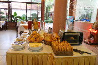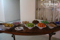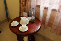 Номер 216 супериор на втором этаже с балконом.Хорошая мебель,2 кровати ,столик с чайными принадлежностями ,чайник,телевизор,стол. Сантехника хорошая,мыльно-рыльные принадлежности докладывали каждый день,есть фен. Рецепшн представляет собой маленькую комнату в здании на входе.Персонал очень приветливый и внимательный. На пляже всего 10 лежаков,приходилось вставать пораньше.Завтраки обильные: супы,каши фрукты,колбасы,оливки,соки ,бекон,рис,сыры.Рекомендую.
