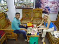 Отдыхали с сыном с 14 по 21 января (у него не было выбора - сопровождал добровольно-принудительно маму в честь ее 55 летия). Прилетели где-то в 17-00, когда уже солнце почти село, а это значит, что вечереет и темнеет очень быстро. Встречали и сопровождали на всем отдыхе гиды ФлэшТура. В отель завезли вторыми. Пока ехали, гид в автобусе развлекал шутками и втолковывал, в каком отеле как зовут гида, и где его искать. Провел до ресепшена, передал на оформление, которое прошло очень быстро и с шутками. У меня было письмо от ТопХотелза о том, что уважаемые отельеры будьте осведомлены, что ваш гость входит в сообщество путешественников и пишет отзывы о посещенных отелях на данном ресурсе. Поняли они что-то или нет, но Хоссэм, который нас оформлял и провожал в номер, потом на протяжении всего отдыха интересовался, как у нас дела, и не надо ли нам чего-нибудь.