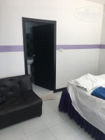 Отелю действительно требуется ремонт и обновление мебели, но для тройки это вполне приемлемо для проживания. У нас был номер в вилле на первом этаже с выходом на бассейн, окна пластиковые, поэтому было не шумно, на втором этаже к сравнению они деревянные и думаю там не особо комфортно. Номер очень просторный с минимум мебели: кровать (точнее матрас на бетонном основании), два столика (также из бетона), стул, диван (раскладывается), телевизор, чайник, фен. Возле номера маленькая окрасам где 2 стула и столик (пластмассовые) на них облезает краска (остаётся на коже, мы подкладывали полотенца, та же ситуация и с лежаками у бассейна) , ещё нам повезло что нам досталась небольшая сушилка для белья, соседний номер натягивали верёвку между колоннами...