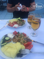 О питании ,еда достаточно разнообразна ,каждый день жарили что то на мангале.Фрукты были каждый день,наелись на год вперёд,арбузы ,дыни,слива и яблочки.Очереди в ресторан конечно большие ,но это больше "заслуга" наших соотечественников,приходят за час и ждут ,как будто на отдыхе больше заняться не чем.Мы же приходили немного припозднившись и без проблем занимали столик.Кто едет с детьми ,думаю проблем с питанием на будет ,на завтрак большой выбор йогуртов и каш ,так же есть стульчики для кормления,а это несомненно плюс.Так же для желающих перекусить работает бар на пляже ,там можно полакомиться теми же фруктами ,пиццей ,либо картошкой фри.