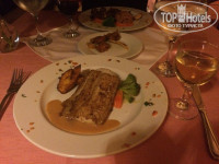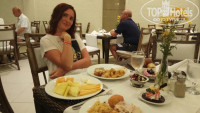 Питание в ресторане шведский стол. Завтраки разнообразные, понравились фреши из свежих фруктов. Все остальное стандартно. Кофе вкусный. На яйцах (яичница и омлет) стоит замечательный дядька повар, веселый такой))) На обеде были пару раз, выбор тоже хороший, голодными не останетесь. На ужин стараются, есть мороженное, выбор мясных блюд, рыба. С морепродуктами закуски и салаты. даже поросенка как то жарили, каждый ужин на шведском столе приветственный коктейль на входе.