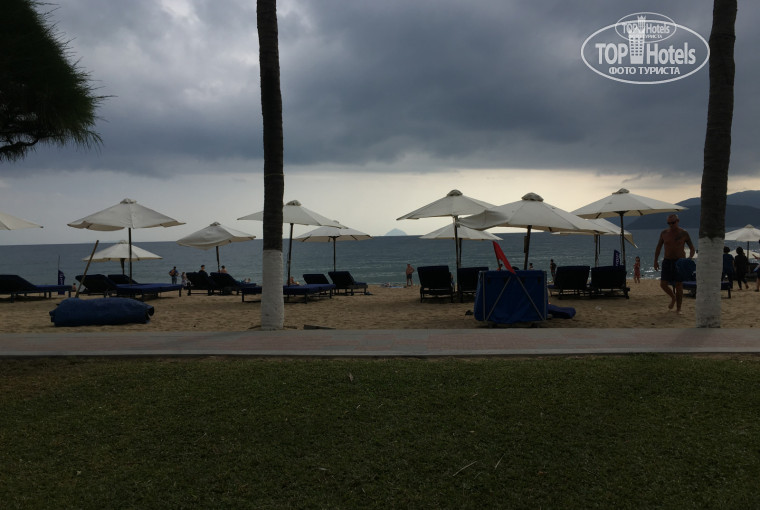 Море с сильными волнами, зайти в воду тяжело. Шезлонги с зонтиками платные, торгуйтесь до 40000 донгов за один. Пожалела, что не купили складной пляжный зонт и не привезли с собой. Используйте крема от солнца с высокой защитой!