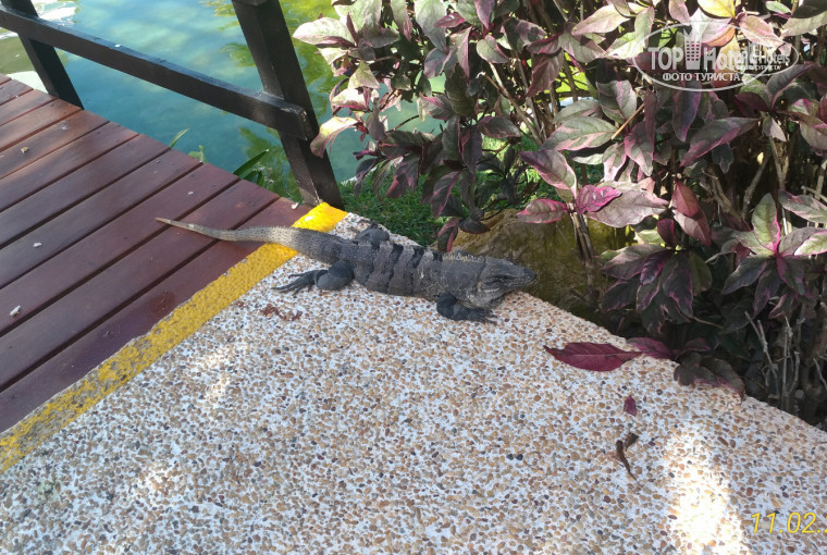 А вот океан, он не просто волнуется и бурлит, он дышит. Волна накатывает одна за одной, с пеной и грохотом, и просто поплавать, как на Кубе в Варадеро в лазурной спокойной глади океана, не получится ни как, тем более с ребёнком. Мы сразу перестроились и колбасились с дочкой 11 лет, а иногда и с супругой в прибрежных!, только в прибрежных волнах. Набили синяков и шишек, всегда полная голова и полные труселя песка. За 14 дней отдыха у нас поглотил океан и засосал песок двое очков от солнца, трое очков для плавания, три косынки, две резинки для волос, одну бейсболку, и почти поглотил плавательные шорты, шнурок у которых я забыл завязать. Спасти чудом на ощупь удалось одни солнечные очки. Всё происходит очень быстро: бъёт волна, сносит вещь, ты бросаешь на неё прощальный взгляд, и откат волны поглощает всё как пучина. Совет. Никаких очков на глазах и на волосах, никаких плавательных очков на лбу, косынки снять, шнурки на шортах закрепить. С больной спиной не лезть. На побережье есть более спокойные места, где волны меньше, вплоть до штиля. На автобусе R1 или R2 доезжаете до Playa Caracol или до Playa Tortugas. Там небольшие общественные пляжи, с платными лежаками и зонтиками. Но мы шли на отельные. Берег и песочек везде государственные, а вот воспользоваться лежаками можно только с браслетом ближлежащего отеля - в пол глаза смотрит спасатель. Проявив небольшую хитрость и сноровку, Вы потихоньку осваиваетесь на лежаках и наслаждаетесь полноценным отдыхом. Найдите карту местности, будет легче ориентироваться. Можно заранее скачать в интернете. Можно взять внизу в Пирамиде, там столики турагентств, в том числе Анекс. Можно напротив отеля через дорогу, чуть левее, у лодочной станции, где будка с прокатом катеров по заливу с крокодилами.