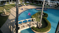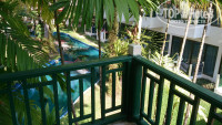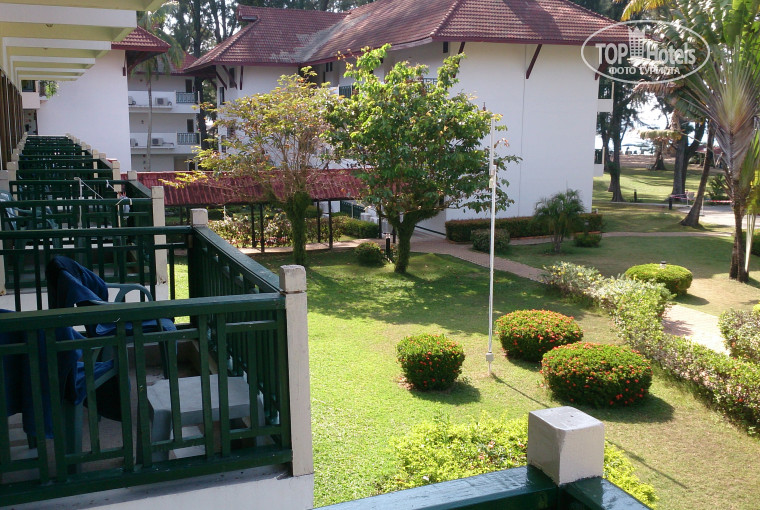 Об отеле,территории и пляже:отель включает в себя полтора десятка в основном трехэтажных зданий ,лифтов нет.Есть детский бассейн диаметром примерно 12 м. на пути к пляжу,а также большой протяженный бассейн между корпусами в южной части территории,оба регулярно чистят.Купались в большом ,понравилось,запаха хлорки не чувствовалось.Территория отеля немаленькая,достаточно чистая и ухоженная-кругом зеленая трава и огромные казуариновые деревья и пальмы,обвитые лианами.Вообще уже напрашивается замена