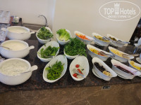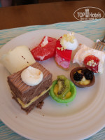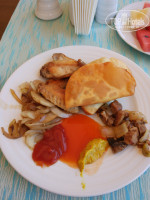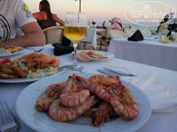 Еда , напитки - напитки только вино, пиво, и пиво в бутылках очень вкусное !водка, джин, раки и коньяк ,виски нет!коньяк и етсь аля виски) Наливают от дущи!))) следите - пол стакана коньяка и пол газировки и через 2 стакана вы уйдете спать ))) мохито и все остальные коктейли - платные. Бесплатно могут вам только сиропа цветного налить куда хошь)) еда - скажу так- по мне , выбор маленький , все свежее вкусное , Но всегда можно выбрать что-то и мяско и курочку и рыбку и колбаску и зелень и даже креветки огромные и вкусные по субботам на берегу морря ) есть перекусы -это буиер с тонокй колбасой и сыром и листом салатным ))) как то видела вафли ) и мороженое ) мороженое хорошее и на развес и в упаковке - смотрите фото .Перекус -обед есть в аквапарке, там много чего вы найдете ;)Вообщем все вкусно, голодными не останетесь ;) , но мне есть с чем сравнить.