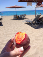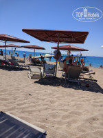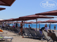 Пляж - всегда есть свободные лежаки !В любое время! Никто не занимает их полотенцами!Ура!!! Очень приятно) Часто можно даже занять место и на первой линии) Все бы так делали и везде ;) Единственный минус - вход в море!вот это конечно очень плохо( очень больно входить и выходить ((((( внутри какие то булыжники ( входишь как кукарача и выходишь также ( на фото видно , что там плиты огромные ((( мамочкам с детьми конечно проблемно это( заходишь недалеко и балансируешь. Приходилось заходить только с пирса. Море в июле очень теплое )
