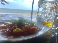 Вдоль набережной есть тоже кафе, там всех морских можно посмотреть, выбрать и приготовить. Далее заброшенный шикарный отель, при нем кафе, там обедала с видом на море, чуть дороже, но очень хотелось красивого вида, а не на дорогу.