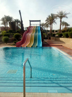 Отель мы выбирали сами, из-за песчаного пляжа и из-за бухты, и не ошиблись, да не первая береговая линия, но ходить, пешком абсолютно не напрягало. До пляжа минут 10 пешком, на пляже выдают полотенце по браслетам, лежаков всегда всем хватало, на пляже лежаки, шезлонги, столики, урны, очень понравилось, что растут пальмы на пляже, море безумно красивое, есть островки с кораллами. Номер мы бронировали студию, они были почему-то дешевле, но по нашей просьбе Мина нам дал стандарт, они дороже и ближе, но подуставшие номера, но это было не важно, все целое, все работало, кондиционер конечно очень шумный, мы оставляли его включенным, только, когда уходили. Территория отеля большая, очень красивая, бассейнов 7-8, есть еще аквапарк, стоит туда сходить, возле многих бассейнов выдают полотенце, есть бары до 17:00ч, у главного бассейна можно взять мороженое, бармены готовят вкусные коктейли, основной бар, что у главного корпуса работает до 24:00ч., пиво разливают с банок, соки в тетра пакетах, напитки очень даже понравились. Питание конечно не Турция, но выбрать, что поесть всегда было. Мы очень хорошо подружились с очень добрым, улыбчивым менеджером ресторана Reda, кстати, до последнего и не знали, что он менеджер, думали просто официант, так вот Реда нас постоянно чем то вкусным угощал, то сыр, которого нет на раздаче, то вкуснейшие фреши, то фруктами. В последний день Реда нам даже сделал подарок, сыр очень вкусный в коробке и какой- то алкоголь 50 градусов:). (Реда на фото в красной футболке). Большинство персонала отеля очень доброжелательные люди, еще хотелось бы отметить Пушкина, очень позитивный, добрый и услужливый человек, он выдает полотенце у бассейна. (Пушкин на фото в белой футболке), еще есть аниматор Ка-Ка тоже очень веселый и позитивный человек. Все эти ребята без всяких там намеков, озабоченных взглядов и т.д., что не могу написать о бармене у главного бассейна и о охранниках. Насчет уборки в номере, нормально… никто конечно давно не протирал двери и мебель, шторы грязные, но это не испортило нам отдых. За доллар делали фигурки и украшали цветами, полотенце меняли каждый день, наполняли туалетными принадлежностями, оставляли воду 1,5 литра, чтобы поменяли постельное белье, написали записку. Насчет экскурсий вообще ничего не берите у отельного гида Joyce tours, во первых дороже во вторых все намного хуже. Мы купили у него экскурсию на яхте на целый день с погружением, так вот яхта была никакая там не Вип, кормили очень просто, насчет дайвинга могу много писать недовольств, снаряжения абсолютно не подготовлены, костюмы все старые, на мой размер вовсе пришлось ждать пока освободится. Все остальные экскурсий брали у Саши на пляже с компаний «Санан Фан»: гора Моисея и храм святой Екатерины, сафари на квадроциклах, полет на парашюте. Все остальное время занимались снорклингом, маску и трубку купили за 5$, аквасоки за 4$, но они особо не понадобились. Все что покупаете, торгуйтесь, сразу можете разделить на 3. Насчет масел без проблем все провезли, хотя гид на обзорной экскурсий постоянно говорил, что не вывести, нужно брать там где они возят и т.д, не видитесь на это. Мы взяли масло на рынке Наама бей, а пищевые, лечебные масла как масло черного тмина, взяли в аптеке за 10$, то же самое пихали на обзорке за 47$.