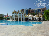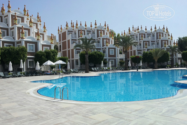 ТЕРРИТОРИЯ: Территория для всех трех отелей общая. Она просто огромная. Я не припомню еще в Сиде отелей с такой большой собственной территорией. Много зелени, бассейны у каждого отеля свои, но пользоваться можно без ограничений, как самими бассейнами, так и барами возле них. На территории есть 2 футбольных поля, тем кто хочет порезвиться с мячом это будет интересно. Есть три водных горки довольно внушительных размеров. В общем разочарованными не будете