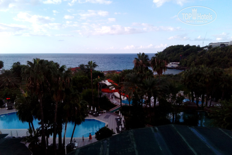 Отдыхали в октябре) один из минусов что отель находится долековато от аэропорта, добрались за 3-4 часа. Разместили почти сразу. Первое впечатление было замечательным. Сам отель очень красивый и большой. Сначала номер дали выходящий на трассу и на другой отель, вид был замечательным. Но к сожалению в 11 часов в соседнем отеле началась дискотека, до 2-3 ночи выспаться после рейса было не реально. На следующий день без проблем за определённую $ переселили в другой номер выходящий в бассейн. В общем с питанием было все хорошо всегда уйма и куча разных десертов, салатов , по утрам блины и не только , обычно по вечерам повара готовили на улице шашлык и рыбу, иногда и борщ был. Персонал очень приветливый и доброжелательный. Официанты всегда подходили и спрашивали что бы вы хотели выпить ( очень много выбора, хоть обпейся, никто слова не скажет) так же было 3 бара. В одном баре по дороге на пляж с 11 есть бургеры и картофель фри. Так же при отеле есть магазин ( сувениры привезли все почти оттуда) к сожалению пляж не очень большой, но есть причал где лежат лежаки. Прыгать не желательно, в море очень большие скалы, на довольно большой глубине можно встать на скалу. Дети тоже не будут скучать. Целый день работают аниматоры. (Придумывают много интересных конкурсов) . По вечерам бывает караоке. При отеле есть хамам но по мне так лучше съездить в другой( . ( пожалуйста перед покупкой путёвки смотрите погоду, к сожалению мы попали в шторм, купаться было не возможно. Из за этого потеряли 3 дня)