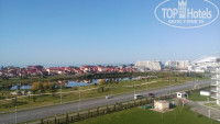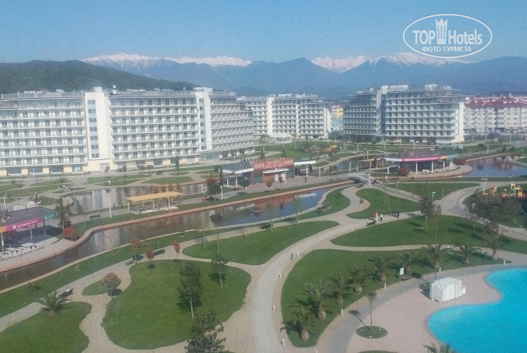Когда мы заселялись, нас поселили во 2 корпус на 7 этаже с видом на Олимпийский Парк и Образовательный центр "Сириус", и море было видно=) Номер небольшой, но уютный и самое необходимое имеется: телевизор, чайник, фен, холодильник. Сейфа нет-это нас не очень порадовало. Воду не предоставляют!
