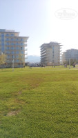 Он находится в 7-10 минутах ходьбы от моря (но нужно учитывать, что от самого дальнего корпуса от моря время увеличивается!). То есть, понятно, что придется пройтись, а если вы с детьми, то времени потребуется больше.. Территория отеля большая, зеленая, ухоженная. Отель состоит из 12 восьми этажных корпусов.