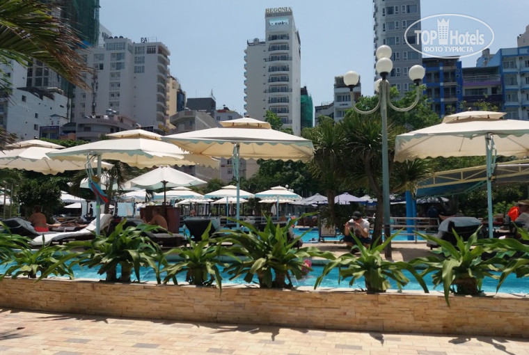 Впервые во Въетнаме,отель выбирать не пришлось,в тот день,когда осуществляли бронирование ,он горел в списке супер предложение дня,поэтому выбор оказался очевиден.Почитав отзывы,даже обрадовались,что все не так плохо)Прилетели мы рано утром,в 8 утра были в отеле,ехать от аэропорта со всеми попутными высадками туристов минут 40.Высадили нас на парковке,гид помогла пробежать через ну ОООчень оживленную трассу и покинула нас.Заселение в отель производится в 14 .00. На ресепшене ни единый человек не говорит по ни по английски, ни по русски и вообще делают вид,что не замечают тебя))порой приходилось назойливо стоять над душой,чтобы добиться внимания)Поскольку обменники работают только с 11 утра пришлось первый обмен произвести на стойке.Курс был 100$-2 400 000.Потом было замечено,что менялся он каждый день,к нашему уезду он был 2 670 000.Вещи все оставили в комнатке рядом с ресепшен и все благополучно удалились,взяв все необходимое.Пошли на разведку,прошли буквально 10 м,присели в кафе,которое впоследствии и стало нашим излюбленным местечком.Там конечно не супер уютно,но оказалось довольно-таки чистенько и еда оказалась не слишком убитой специями и порции большие.Дальше следовало научиться переходить дорогу,казалось бы никаких проблем возникнуть не должно...нооо...такого я еще не видела))эти маневры байкеров вокруг тебя заставляли нас с писком перебегать маленькую дорожку..надеяться на то,что тебя пропустят или притормозят не стоит)Прям напротив нашего отеля Парк Горького,облагороженное местечко,где просто приятно сидеть,гулять,к нему прилегает ресторан Стори,так же Ночной клуб Рэббит хаус,оборудована зона под лежаки всех видов и размеров и там же бассейнчик.В целом все очень мило,чисто,лавочки,если идти по парку в сторону Лотоса(это местный ориентир-изваяние),то встретится множество скульптур,фонтанов,красиво подстриженных деревьев,баров,в общем одно удовольствие..Пляж по всей линии чистый,никакого мусора,камней,живности..мягкие заходы..безумные волны,"ласковое" море)))По всему периметру лежаки,которыми мы ни разу не воспользовались..но говорили цены варьировались от 40 до 100 тыс местных.Лузиана бар славится самым вкусным пивом на берегу,около Лотоса Клуб Гавана с панорамной площадкой и ночной диско на 46 этаже и диско Зима,где обитают в основном русские туристы.Можно найти развлечения на любой вкус,даже находясь в радиусе отеля.Так же посетили Гриль гарден,буфет с самостоятельным приготовлением пищи,с мангальчиком на столе и изобилием морских представителей.пошли туда начитавшись положительных отзывов,и да,я тоже к ним присоединяюсь! 240 тыс местных за вход и пробуй все,что пожелаешь..Сидя на свежем воздухе и пропитывая себя испарениями костров на столе со всех сторон)))Возвращаясь к отелю..по наступлению 14.00 нам дают номер на 2 этаже-202. Забегая вперед,скажу,что номер по соседству,203,качественно отличается,там даже балкон есть)))В нашем же ни оказалось и окна,точнее маленькое,затхлое,выходящее на окно соседнего номера)В номере старенькая мебель,две двухспалки..зачем такие огромные?!далеко не первой свежести полотенца,мало места.Одежду сушить негде,да и она не просыхает,что касается купальников,каждый день приходилось одевать сырые)Кондей работал,по телевизору один канал русский.Вода без перебоев шла.Все вышеперечисленное нисколько не умо