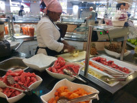 А на утро все начало меняться. Стандартный завтрак - отличная натуральная колбаса и ветчина, очень достойный сыр (тот, что с плесенью, а не заплесневелый). Тарелки нормальные, не идеальны, но и не криминальны (весь отпуск будут такие). Йогурт, рисовая холодная кашка (на любителя, мне понравилось), кофе натуральный, яйца, яичница. Если хотите омлет или глазунью, придется постоять. Готовится не быстро. Для фруктов не сезон. Были ананасы (для меня кисловаты), папайя (очень хорошая), гуава (если спелая - вкусная), арбуз (несладкий). Продолжу про еду. Обедали в гриле (Ла-Калета) на пляже. Рыба, мясо, рис, макароны. Просто и сытно. Все съедобно. Ужин и рыба (готовится на улице) и мясо (если не хотите резину берите тушёное). Никаких проблем с пищеварением за время отдыха не было. Ешьте, что едите всегда. Куба не рай для гурманов, но все качественно.