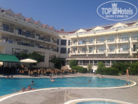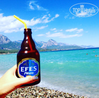 Ну так вот начнем) Выбор отеля не стоял да и отзывы я почти не читала, т к туда летели друзья из Стокгольма пришлось выбрать его. Отель находится на 142й линии, я бы сказала, а не на второй, пока идешь до моря можно от жары скончаться) лежаков на пляже нет уже в 9 утра, не говоря уже о 12ти, территория пляжа именно для этого отеля мизерная, поэтому мы редко купались на том кусочке, мы ходили дальше по берегу, хоть лежаки и платные (2 доллара вместе с зонтом) но намного чище и красивее, шире сам берег, чище сама вода и не так много людей. В баре на пляже для тех кто из отеля есть вода, чай, юпи) алкоголя ессно нет, что очень печально, т.к. в турции привыкли, что на пляже всегда есть бар, где можно попить пивка) пиво в магазинах и на территории пляжа стоит практически одинаково, 3-4 доллара за 0.5 Ефеса. Что касается бассейна то тут проще, лежаков свободных полно, на территории 2 бассейна, мы купались в том что у старого корпуса, там и бар рядом и музыка играет.