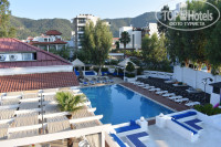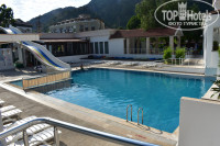 Отель оставил приятное впечатление! https://www.youtube.com/watch?v=-EHpKzUgQ0A Отдыхали 2 взрослых и 2 детей:5 и 17 лет. Номер был семейный в 1 корпусе. При открытом балконе слышимость с улицы великолепная!-) но, учитывая что на улице +40 градусов, кондиционер работал практически круглосуточно. При закрытых окнах и включенном кондиционере, слышно только кондиционер! Но поскольку он дул прям в голову, спали ногами в изголовье,укрывшись простыней. В первой комнате сдвинули две односпальные кровати (там где дул кондиционер), во второй его не было и на двухспальной кровати спали дети. Естественно дверь в спальню была всегда открыта......Номера убраны чисто и аккуратно,можно ходить босиком. Мы вешали табличку "не беспокоить" и в номер никто не заходил. За 10 дней мы 2 раза ее поворачивали, когда надо было поменять полотенца и пополнить шампуни/гели/бумагу. Персонал отзывчивый и доброжелательный. Еда...голодными не останетесь....на завтрак всегда есть яйца, омлет, зелень, помидоры, огурцы,оливки, различные хлопья, соевое молоко, свежии булочки, масло,сыр,мед,джемы,апельсины. Колбасу и сосиски старались не брать (на нее смотреть страшно, не то что есть). На обед: два вида супа (пробовали однажды...похоже на разведенный кетчуп), всегда есть тушеная курица,котлетки соевые, котлетки из печени, рис, картофель фри, вкусный лаваш, овощи в различных вариациях, очень вкусный салат с консервированным тунцом, апельсины, сливы,абрикосы, один раз было картофельное пюре. На ужин всегда давали арбузы, котлетки на гриле (однажды были из настоящей говядины). Напитки:вкусный местный гранатовый и яблочный чай, кофе хороший,ну и юпи разных цветов. В баре кола,фанта,виски,вино,пиво,ракия местная. Весь алкоголь разведенный, пьяных замечено не было. Бассейн на высоте. Чисто и обрабатывают каждый день. Ребенок сказал что море соленое и холодное и сидел в бассейне. Море теплое +26....это залив, поэтому волн нету, дно-песок,который мутит воду. Мне, выросшей на р.Волге казалось что я в реке, а не на море. До пляжа 3 минуты ходьбы. Пляж мелковат, поэтому ходили плавать чуть влево, где городской пляж, без лежаков. Ездили на 4 экскурсии (многовато для 10 дней). Все экскурсии понравились очень: Дальян (крабалка https://www.youtube.com/watch?v=7VHP2uUzDKs,черепахи https://www.youtube.com/watch?v=GFsJKqCsJKw ,ликийскии гробницы,грязевые источники https://www.youtube.com/watch?v=d8HV5I9koac, эгейское море), Остров Клеопатры https://www.youtube.com/watch?v=CwW3gxTLWXA (открытое море, г.Акекова,пляж с великолепным песком), Памуккале https://www.youtube.com/watch?v=LxU9hgUTMTc&t=16s (это вообще чудо света,посмотреть надо всем раз в жизни точно) и обзорная в г.Мармарис https://www.youtube.com/watch?v=GhNNMUq4eWw&t=83s (ее нам дали в подарок от Пегаса). Все экскурсии покупали у Пегаса (хотелось надежности, ведь с нами маленький ребенок). Обзорную покупать отдельно нет смысла потому что это шоп-тур с заездом в крепость Султана Сулеймана https://www.youtube.com/watch?v=Aav5xuTxL-c&t=35s (крепость находится прям на набережной, куда ходят маршрутки из Ичмелера стоит 3 лиры, ехать 15 минут), ювелирный центр рядом с большим Мигросом, Меха,кожа (аксессуаров кожаных там нет) и магазин лукума где его 85 видов...по 65 лир кг. (напробовались основательно)...но лукум покупали в магазине, напротив отеля, прям на углу как идти на море (видов конечно не 85,зато цена 45-55 лир). Продукты при необходимости покупали в Мигросе (на выезде из Ичмелера) https://www.youtube.com/watch?v=PT8Dgkz30iA&t=11s, ходили туда пешком. Там же пок