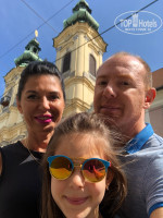 Рядом много красивых и интересных мест! Забронировал на 2-х взрослых, приехали с ребёнком-никто не попросил доплату за размещение или за завтрак. Это приятно. Припарковали на подземный паркинг машину...читал что будет платная-15 евро. При выселении не взяли ничего. 103 евро отель +4 евро сборы. Номера новые и красивые. Интернет хороший.