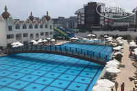 Отдыхали с мамой с 22.04.18 8 дней. Отдых подучился просто шикарный! Приехали в отель около 10 утра, позавтракали, пошли на пляж) заселили нас около 12 без дополнительных плат, номер сразу понравился, чисто, аккуратно, балкон, на вид из окна нам было плевать, так как планировали все время проводить на пляже и на прогулках! Очень повезло с погодой, в первый день 23 градуса, потом 25-27, на солнце жарко, по вечерам конечно прохладно, нужно брать ветровки! Море 19 градусов, но все равно купались, заходить холодно а выходить потом уже не хочется) на пляже отличный бар, лежаки , зонтики, волейбол все бесплатно. Очень хороший заход в море, особенно для тех кто с детьми. Пляж чистый, постоянно убирают. Питание выше всяких похвал, даже не хватало сил по чуть чуть все попробовать, все очень вкусно! Много рыбы, мяса, были и морепродукты но в виде закусок. Раза 4 давали клубнику, а так каждый день апельсины, грейпфруты, мушмула (оч вкусная) и какой то их непонятный зелёный кисловатый фрукт) особых очередей не было, еды всем хватало! персонал весь вежливый, услужливый, внимательный ко всем гостям. За обедом, ужином предлагают пиво, вино трёх видов. Пиво и вино неплохое, коктейли тоже сносные) пробовали местную водку раки, пьётся легко но уж очень коварная)) по анимации каждый день зарядка, аквааэробика, водное поло, дискотеки для детей, взрослых, вечернее шоу(танцы,конкурсы,фаершоу). Есть бар у бассейна, на пляже, лобби, этого вполне достаточно. Отель очень красивый как дворец) заказывали фотосессию у ребят в отеле, сделали отличные фото! Особенно с очаровательным попугаем по имени Паша)) Экскурсии не брали пару раз ездили на маршрутке до Сиде и Манавгата за покупками! В общем отдых получился замечательный! Из минусов можно отметить только неорганизованную работу туороператора! А отель рекомендую!