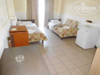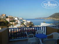 Номер. Светлана быстро нас заселила в апартаменты 21, рассчитанные на четверых, самые удачные на мой взгляд с точки зрения близости к ресторану (недолго подниматься наверх по ступенькам) и открывающегося вида. Достаточно чистый номер, большая лоджия со столиком, есть кухня, чайник, плитка, посуда. Кровати мы сдвинули, на следующий день уборщицы проложили нам одеяло в щель и максимально приблизили вид ложа к двуспальному. Имеется ванна, а не душ, но отсутствует крепление для лейки, что весьма неудобно. Из принадлежностей только мыло. Уборка ежедневная, полотенца меняли раз в 2 дня. Есть фен неплохой мощности. В шкафу сейф, 10 евро за неделю, но мы не пользовались, часть денег и паспорта оставляли в чемоданах. Кондиционером не пользовались. В холодильнике нас ждал чей-то недоеденный торт) Розеток достаточное количество (правда, одна сильно расшатана), есть даже радио с нейтральной приятной музыкой. Вечером в большой комнате довольно темно, общее освещение тусклое, а настольной лампы не хватает. Вай-фай только у ресепшен корпуса Мифос и у ресторана корпуса София, до номера не доставал. Скорость сносная.
