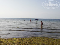 Пляж начали хорошо убирать после 1-го мая. До этого водоросли, мусор и пакеты плавали в море и лежали 1,5-метровой полосой на берегу. Вода в море нагревалась быстро, т.к.глубина 1,5 метра у буйков. Море для детей. Когда хорошая погода, на пляже не хватает лежаков.