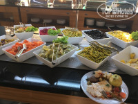 Еда в первый день была ужасная: на завтраке стоит куча больших мисок с непонятными соусами, вместо каши - вода молочного цвета с непроваренным рисом. Более менее можно было есть яичницу, но она есть где-то первый час с начала завтрака, оладьи отвратные, сухие завтраки можно залить только водой молочного цвета, вкусные бублики с кунжутом, запеченые с сыром помидорки. Овощи ещё можно взять. На обед и ужин были какие-то котлеты и что-то типа нагетсов, абсолютно не из мяса. Ели тушеную курицу, огурцы, помидоры, саоатные листья. На обед и ужин подают выпечку, в основном тоже очень химозную: ярко крашенную с очень ярким ароматом. Мы ели пахлаву. В последующие дни появлялись говядина, утка и рыба, но не каждый обед и ужин. Мороженое в 15ч до 17ч, на вкус тоже странное, особенно клубничное ядреное.