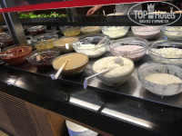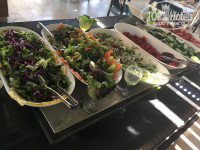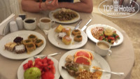 Заселившись, мы побежали искать, где поесть, так как не хотели ждать полчаса ночной суп. В кафе мы оставили 10$, ничего не съев, так как есть невозможно... Вкус несвежей еды, замаскированной кучей специй. В первый же вечер захотелось домой, так как все эти мелочи очень раздражают и портят отдых. К тому же, купив путевку по-дороже, мы надеялись избавить себя от всех этих проблем. Сайт отеля на момент выбора отеля не работал, поэтому информацию я искала просто в интернете. Так, я прочла, что в ультра all inclusive есть соки, разнообразные фрукты, мороженое. После ужасного вечера надежда была на эти блага. Фрукты были: яблоки, апельсины, груши, иногда можно было среди украшений блюд найти ломтики грейпфрута, один раз киви, арбуз был кубиками в составе салата с яблоками и грушами, залитого каким-то маслом. Соки свежевыжатые платные, и только из яблок, апельсинов и груш. Бесплатные - химозные «концентраты» в автоматах. Зачем-то на ресепшн нам пообещали, что будем много разных фруктов, в т.ч. клубника.