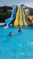 Аквапарк. Всё понравилось. Муж с нашей девочкой катался вдоволь, никаких последствий. Горки четыре, если оттолкнуться, то можно ехать быстро. даже я несколько раз съехала, хорошо. Аквапарк работает по времени, включают два раза в день.
