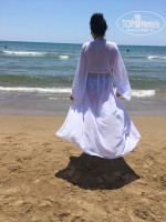 Пляж. Чистый. Иногда заносило водоросли в воду. Идти до буйков недолго! Как это пишут другие. Когда хотелось глубины - плавала от первых буйков ко вторым, там почти никто не купается - красота и чистота)