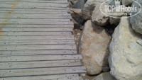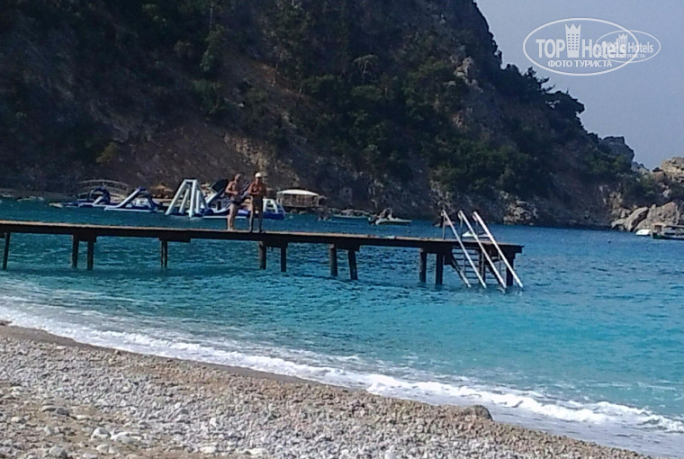 Территория отеля очень зеленая, много полянок, птички поют, но все под уклоном, много лестниц, для спуска на пляж есть два лифта (возле пляжного бара и амфитеатра). Огромным разочарованием стал пляж, многие писали о крупной гальке, но это не галька, а огромные булыжники, как по всему пляжу, так и при входе в воду, есть один пирс (а не три , как написано у анекса), с лестницей, но он весь ржавый, а лестница заканчивается одной ступенькой в воде - выходить не очень удобно. решила написать этот отзыв , чтобы предупредить именно о состоянии пляжа, тк сама перечитала перед поездкой все отзывы, многие писали о плохом входе в воду, но как-то не думала, что вообще сложно войти в море, мы едем прежде всего, чтобы покупаться в море, а здесь лишний раз не хотелось в воду заходить, так неприятно было. Акцентирую, что ХОДИТЬ ПО ПЛЯЖУ И КУПАТЬСЯ МОЖНО ТОЛЬКО В СПЕЦИАЛЬНОЙ ОБУВИ, БЕЗ ВАРИАНТОВ!!!!!! Те, кто не первый раз в этом отеле, были в спецобуви, остальные прыгали как зайцы, ну реально нельзя зайти, я такого нигде не видела. Мне кажется, что это элементарное неуважение к туристам со стороны руководства отеля, неужели нельзя убрать эти булыжники, отремонтировать пирс и проложить в воду несколько деревяных дорожек, как это сделано в других отелях. На второй день сказали об этом гестрелейшинс, они просили отразить это в анкетах при выезде, анкет в номере не оказалось, на ресепшенс тоже, короче этот вопрос никого не волнует, гиды анекстур, сказали, что отель пользуется популярностью и пока туристы едут, никто ничего менять не будет. Еще очень странные деревянные брусья и настил, из которого сделана дорожка и ступеньки вдоль пляжа, судя по устойчивому запаху, сделаны из шпал ( я не шучу, именно шпалы, на которых лежат рельсы на железной дороге).