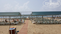 У отеля отличный пляж - большой с множеством лежаков. Места всегда всем хватало. Вход в море - мелкий песочек, а чтобы поплавать надо пройти очень далеко :))) Пляжные матрасы платные - 2 евро за матрас, мы не пользовались, поэтому как за них расплачиваться не знаю. Пляжные полотенца бесплатно по карточкам ( карточки выдают при заселении, по одной на гостя) в хамаме на -2 этаже, там же их и меняют на чистые.