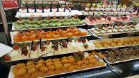 Выбор фруктов не большой, но это тоже зависит от сезона : апельсины, грейпфруты, пару раз были абрикосы, арбузы, алыча. Клубнику отдельно не давали, только на пироженках.