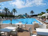 По поводу территории отеля - ее просто нет. Бассейн (кстати не такой уж и маленький как кажется на фото) и лежаки вокруг, сцена и закуток с мини-клубом. Детская площадка крошечная, но малыши от года до пяти лет там по вечерам возились. Один раз видела как на детской площадке даже мыли пол! Про мини-клуб не скажу, дочка туда не ходила. Работница мини-клуба немка. Анимация - не сильная сторона отеля, но может это из-за того, что еще не начался сезон.