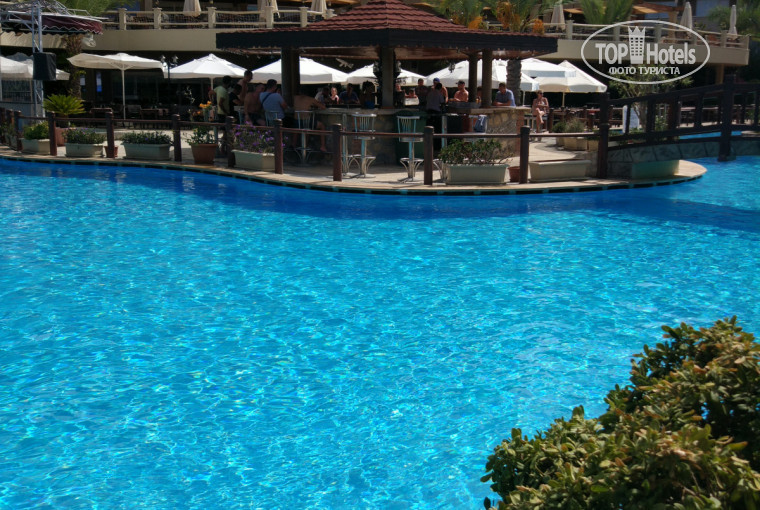 Отдыхали в этом отеле с молодым человеком в сентябре с 13.09.2017 по 21.09.2017, ехали долго от аэропорта, (часа 2,5-3 ), затем нас заселили в хороший номер, большой двухкомнатный, с большим балконом (бесплатно, без наших просьб) ), балкон выходил частично на море, частично на город и горы. Номер чистый, уборка номера проходила тогда, когда повесишь табличку на дверь "убраться"), чисто, хорошо. Единственный минус это кондиционер, который регулировался где то снаружи, и к утру, после сна, просыпались в лютой жаре(( на просьбы это исправить персонал сказал что не может этого сделать( Питание в отеле было вкусным, но однообразным (множество блюд с почти одинаковыми ингредиентами), что под конец отдыха очень надоедало :D на территории отеля было множество столиков для питания, можно было кушать внутри (попрохладнее) или снаружи возле бассейна (причем завтрак всегда проходил отдельно, на 2м этаже), в отеле еще есть спа: массажи (платно) хамам, сауна (бесплатно), 3 бассейна (1 крытый, 1 открытый маленький, 1 открытый большой), множество баров, из которых работали только 4 (внутри отеля, возле бассейна, возле пляжа (самый большой и хороший, круглосуточный), возле дискотеки. Остальные бары были закрыты. Дискотека от отеля просто ужасная :D Одна и та же музыка каждый день (ужасные устаревшие ремиксы песен), причем свои какие то песни ставить не разрешали( сама дискотека под открытым небом, вокруг нее множество диванов, есть где посидеть. До пляжа от отеля нужно пройти пешком примерно минут 5. Сам пляж из гальки, в час пик мест очень мало. Есть свой пирс, с которого можно прыгать в море) Вообще территория отеля очень большая, есть где прогуляться. На территории присутствуют парк аттракционов, игровые автоматы, кальянная, место для игры в настольный теннис. Мы общались с людьми, которые рассказывали, что были в этом отеле раньше (несколько лет назад), и тогда в отеле всё работало (закрытые помещения с баром, водопад в центре отеля и т. д.) а сейчас он постепенно приходит в упадок. Из за этого он тянет больше на 4,5 звезды, чем на 5. Персонал отеля вежливый, приветливый и внимательный.