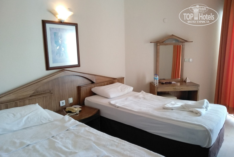 Отдыхали в Мармарисе в середине мая. От аэропорта до отеля ехать 1,5 часа. Приехали в отель почти в 14.00, поэтому заселили сразу. Номер не большой, но все необходимое есть.