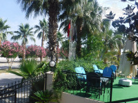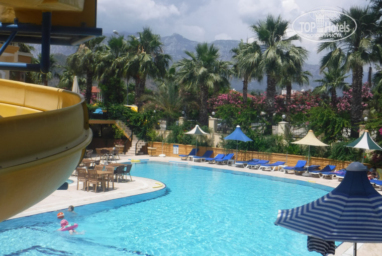 Отель небольшой, территория симпатичная, в центре - большой бассейн, горка,столики рядом, бар. Анимации нет, ее нам и не надо) Поселок тихий, виды, природа шикарные, море уже теплое.От хамама вежливо отказались, номер сначала дали на 2 этаже, но был какой-то шум с нижнего этажа.Спасибо хозяину отеля и работникам ресепшен, предложили 2 номера на выбор на 5 этаже, выбрали в видом на горы и бассейн.Этот номер на 5 этаже очень маленький, но есть еще небольшая лоджия, закрытая от посторонних глаз, нам там понравилось.Уборка иногда лучше, иногда хуже, зависело от того, какая горничная убирала.Один раз положили только 2 полотенца, 2 дня ждали,просили на ресепшен пополнить количество полотенец, тогда сделали и влажную уборку.Иногда чаевые влияли на качество уборки, иногда - нет. Это удивило)
