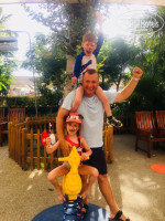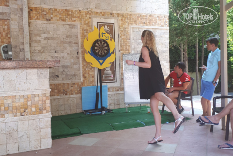 Отдельное спасибо АНИМАЦИИ!!! Вы сделали наш отдых! Лена и Джимми, спасибо, что развлекали наших детей! Им очень нравились занятия в детском клубе: аквагрим, огромная черепаха на пляже, индейский день, разные самоделки в виде аппликаций, браслеты из раскрашенных макарон и бусин - дети в восторге! Особенно нам нравилось то, что детей во время занятий и в бассейн сводят и на водные горки - давали нам, взрослым, без угрызения совести тупо полежать на лежаках и спокойно и позагорать и поплавать, а иногда и поучаствовать в конкурсах взрослой анимации (потому что мы тоже дети, только взрослые))). Различные активные соревнования в бассейнах (особенно на батутах) - нам очень понравились. Ну и дартс! АЛЕКС - большой респект!!! Очень харизматичный и веселый! Слов нет. Еще привет передаем нашим партнерам по игре Мартину и Татьяне! С вами было играть в одно удовольствие! Для тех, кто любит аквааэробику, спортивные разные женские развлекухи - все есть, так же спортзал. Но нет времени успеть все и сразу! Девчонки-аниматоры - уж простите! Вечерняя детская анимация - да, действительно из всей программы одна русская песенка, остальное немецкое. Но нашим нравилось, вряд ли в 4 и 5 лет особое значение придают смыслу текста в песенке - им очень нравились мелодии, под них с удовольствием танцевали, задействовали и взрослых в этих танцах)))). Но, если это читают сотрудники отеля - добавьте русских песенок в вечернюю анимацию, пожалуйста. После детской дискотеки - различные шоу каждый вечер, довольно интересные! Далее все (ну может и не все) следуют на поляну, где проводится дискотека, расставлены столы, где можно посидеть, покурить кальян и выпить, здесь бар работает круглосуточно. Диско продолжается до 24.00 - потом особо стойкие могут спуститься в "пещеру" - мы ее назаали так)))), в закрытое помещение, где идет дискотека. (Кстати, говорили не раз, чтобы там отремонтировали кондиционер, надеюсь услышали)