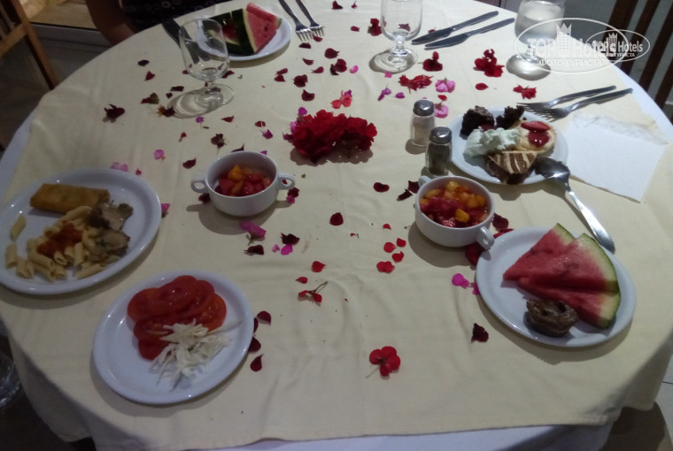Заехали рано утром, нас сразу разместили в номере, кстати они были уже извещены, что мы молодожёны! Но зайдя в номер обнаружилось, что его даже не пытались убрать! После возвращения на ресепшен и объяснение причины нашего негодования на "ломаном" английском, нам сразу без вопросов дали другой номер. Номер был в порядке, кроме его вида из окна, на какую то стройку и ржавую крышу крытого басейна !) Спустились ещё раз на ресепшен, после повторного объяснения причины вышел управляющий отеля, он нас понял и разместил в другом номере. Там уже было всё чётко, вид из окна, убрано, усыпано лепестками роз, лебеди из полатенцев!)